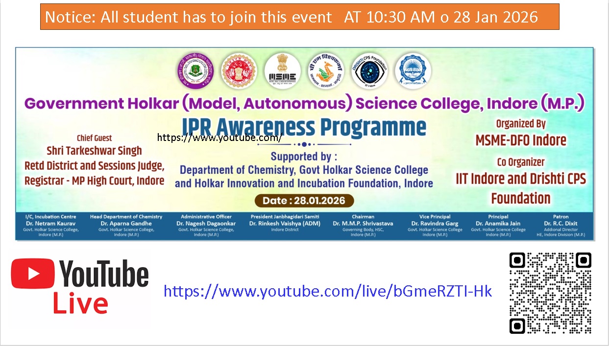 Website Designed , Developed & Maintained By I.T. Cell, Government Holkar (Model Autonomous) Science College , Indore (M.P.)