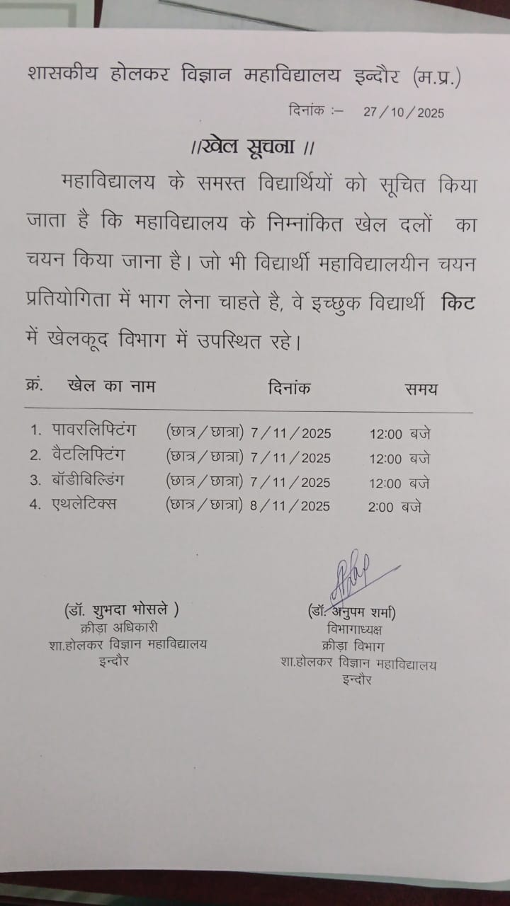 Government Holkar (Model, Autonomous) Science College, Indore (M.P.)